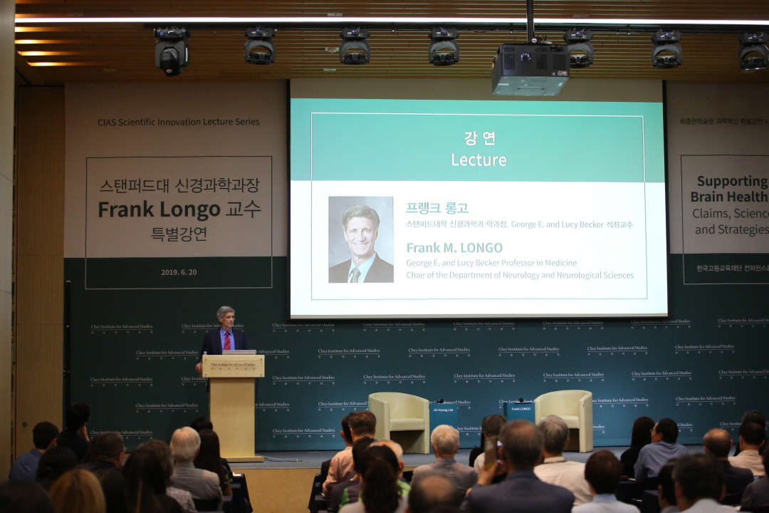 Chey Institute launched CHEY Scientific Lecture Series on June 20, 2019. The first lecture was delivered by Professor Frank M. Longo. He serves as the George E. and Lucy Becker Professor and Chair of the Department of Neurology and Neurological Sciences at Stanford University. Prof. Longo shared his expertise in therapeutic strategies for Alzheimer's disease and other kinds of dementia. Professor Jin Hyung Lee from Stanford University also participated and led the discussion for deeper investigation.